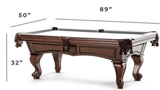 The deep walnut satin finish darkens in the cabinet routing and dentil molding to accent those beautiful details. The under-cabinet Queen-Anne style legs, embossed genuine leather shield pockets and double-diamond sights (inlaid with abalone and mother of pearl) bring sophistication to this gorgeous table.