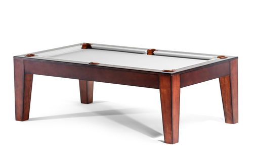 Our Hawthorne pool table, with its tapered legs and clean lines, will be a great match for modern styles in dining and game rooms. The satin pecan finish lets the beauty of the solid hardwood show through, and the double-diamond sights (inlaid with abalone and mother of pearl) bring a little sparkle. And with optional custom rail embroidery, you can truly define your new table as your own.