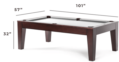 The tapered legs and clean lines of our Serotina convertible dining pool table will be a great match for modern styles in dining and game rooms. The satin dark cherry stain exudes a beautiful rich glow, and the double-diamond sights (inlaid with abalone and mother of pearl) bring a little sparkle. And with optional custom rail embroidery, you can truly define your new table as your own.
