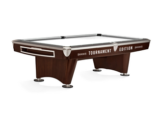 The Gold Crown VI Tournament 9' continues Brunswick's tradition of excellence as the newest edition of the legendary table series. It features a familiar design with modern styling. The new low-profile leg base and hidden stretcher provide a streamlined appearance while the angular canted leg emphasizes the clean lines. The table also features new corner and rail castings in a brushed nickel finish for a sleek high-end aesthetic.Â
