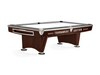 This table features longer rails, resulting in tighter pockets, with corner pockets measuring 4.5"-4.625" and side pockets measuring 5.0"-5.125". It is engineered to strict World Pool-Billiard Association specifications and includes Brunswick Certified Premium 1" Slate, SuperSpeed® Cushion Rubber, and High Performance™ Nut Plate Construction.