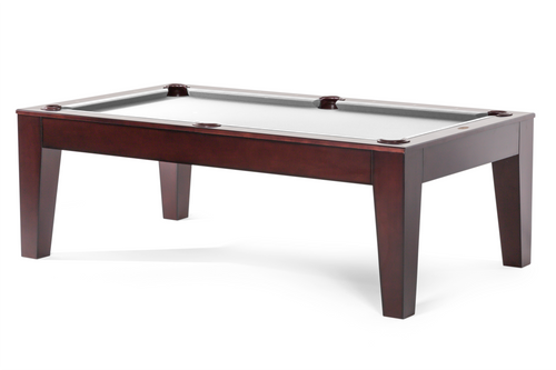 The tapered legs and clean lines of our Serotina convertible dining pool table will be a great match for modern styles in dining and game rooms. The satin dark cherry stain exudes a beautiful rich glow, and the double-diamond sights (inlaid with abalone and mother of pearl) bring a little sparkle. And with optional custom rail embroidery, you can truly define your new table as your own.