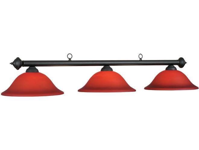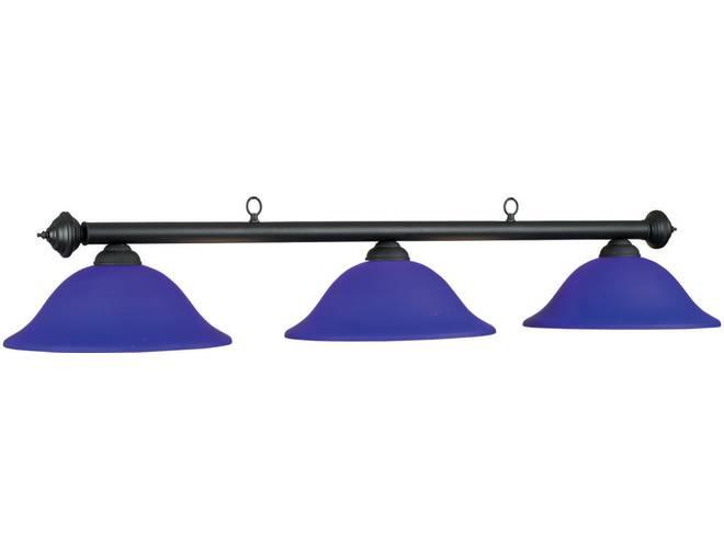 The Marseilles 3-Lamp Pool Table Light by RAM Gameroom feature glass shades available in several colors: Burgundy, Green, Matte Black and Blue. The shades are white-coated inside for pure light on your pool table surface. The shades are set off by a matte black light bar. The Marseilles is a great complement to any Spencer Marston pool table.