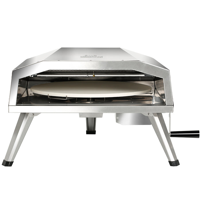 Its 360° manual rotating pizza stone ensures an even and quick cook, making it suitable for not only pizzas, but also steaks, chicken, fish, lamb chops, sausages, and vegetable dishes. Experience restaurant-quality cooking with this efficient and versatile propane pizza oven. Available in Stainless Steel or Black.