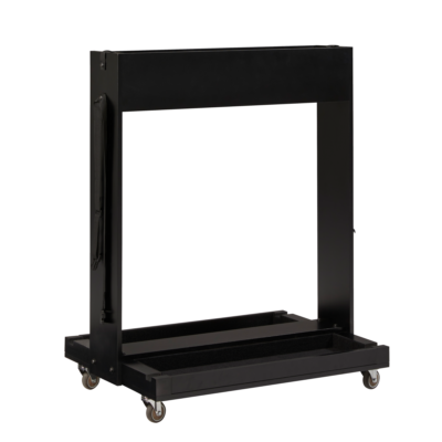 The Conversion Valet has a contemporary black finish that blends with any type of furniture, and is designed to fit either a dining table top or a table tennis conversion top. It includes a large storage compartment and security straps for enhanced safety and convenience. It's equipped with large furniture-grade caster wheels, allowing it to be easily and securely transported over hardwood, tile, laminate, and carpet.