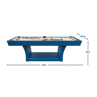 The Atlas 8' Pool Table sets a new standard in modern luxury, featuring a bold splash of Encore Blue that commands attention. Its sleek, contemporary design is expertly paired with exceptional playability. The curved pedestal base offers a distinctive architectural aesthetic while providing outstanding stability for precise shots. Ideal for both design aficionados and serious players, the Atlas guarantees an unparalleled playing experience.This comes standard with the Imperial Essential Play Package, which includes everything you need to get started!