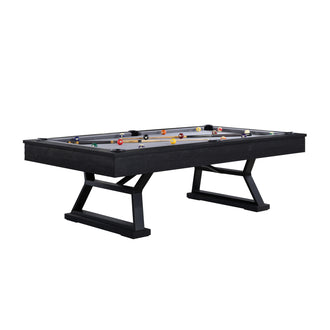 The Durham 8' Pool Table represents the pinnacle of modern leisure design, combining style with practicality. Featuring robust metal legs, it offers both a sleek industrial look and reliable stability for competitive play. Its deep Ink Black finish contributes a refined rustic charm, elevating the visual appeal and making it a standout feature in any modern game room. This comes standard with the Imperial Essential Play Package, which includes everything you need to get started!