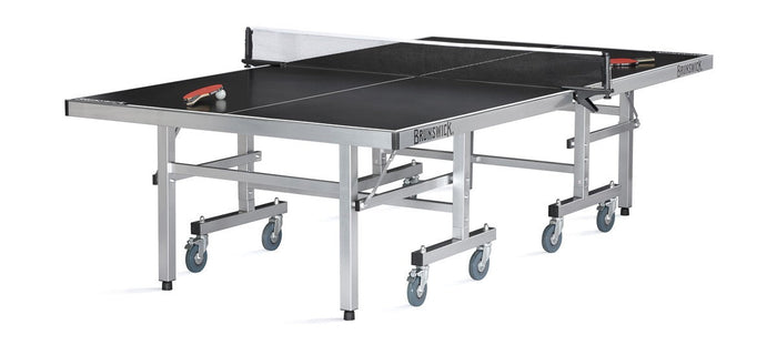 Introducing the unbeatable Brunswick Smash 7.0 Indoor/Outdoor model! This top-of-the-line table is perfect for Indoor/Outdoor play and boasts a sleek black 4mm play surface, complete with a matching net and clip set. With a rugged silver undercarriage for unbeatable durability and stability, and an easy fold-up system for individual play or convenient storage, this table is the ultimate game changer. Premium net, post clamps and a ball & paddle set included!