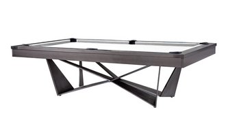 The Plank & Hide Industrial Series 8' Essex Pool Table is a stunning example of modern industrial design. Its angled open-air legs create an illusion of weightlessness, while sleek steel rails, concealed pockets, and diamond laser-etched sights ensure optimal gameplay. The Essex comes in a Gunmetal Grey finish, steel frame & base topped off with stainless steel Rail Caps and Aprons.