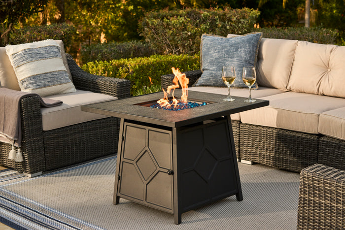 Experience the ultimate in outdoor luxury with our HEATMAXX 32" 40,000 BTU gas fire pit. Using propane as fuel, this square fire pit provides a stable and clean burn, eliminating any fumes or environmental pollution. The elegant table top echoes the unique frame design, seamlessly combining form and function.