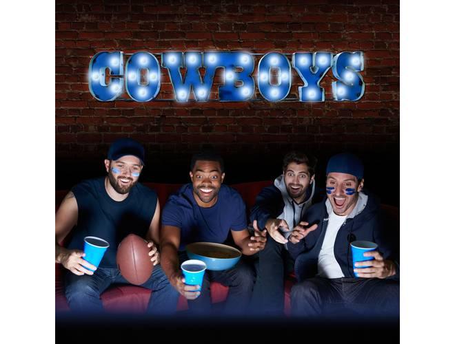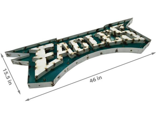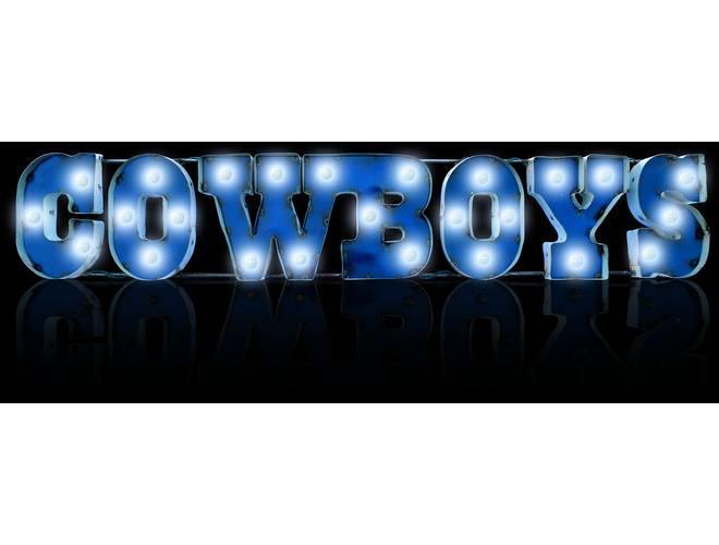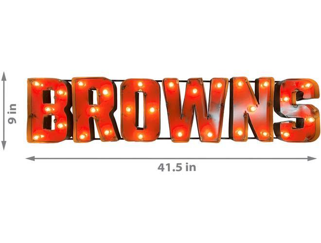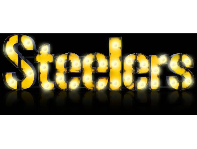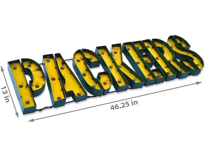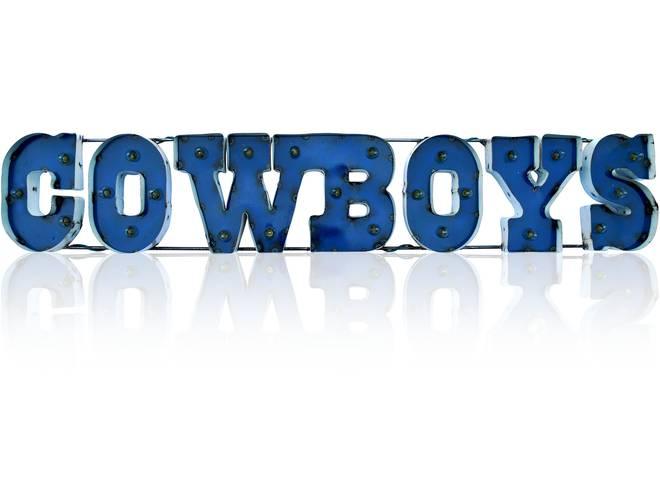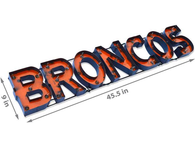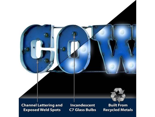 The NFL Licensed lighted recycled metal signs are the perfect way to light up your home or fan cave. These are suitable for indoor or outdoor use and is built by hand from recycled metals. Included are light strands with clear, incandescent C7 glass bulbs to really make these signs pop! These feature channel lettering and exposed weld spots that give a one of a kind, retro look to any space. These are plug-in only.