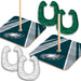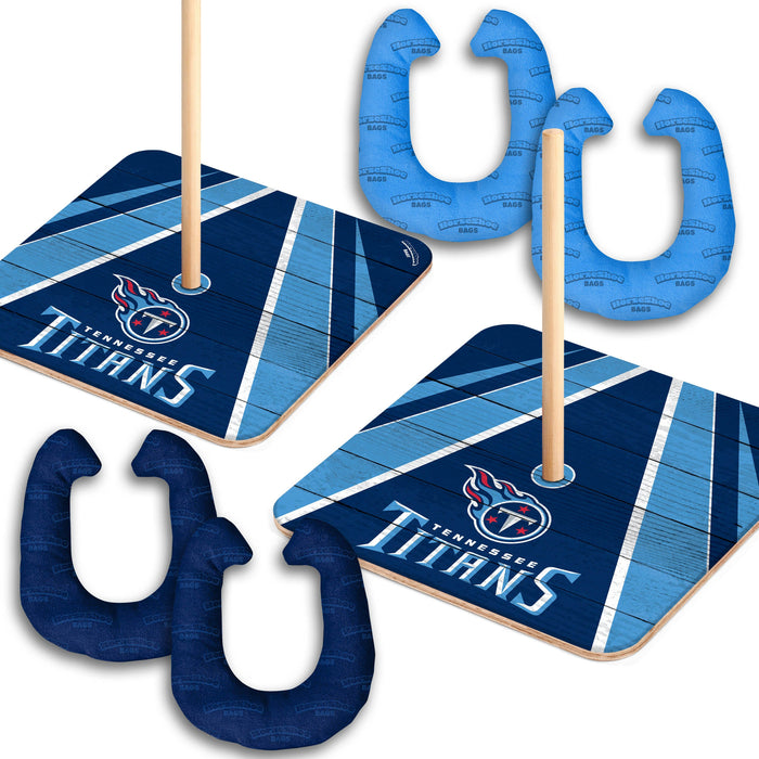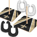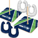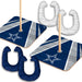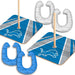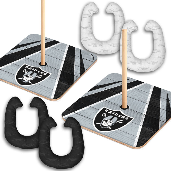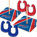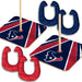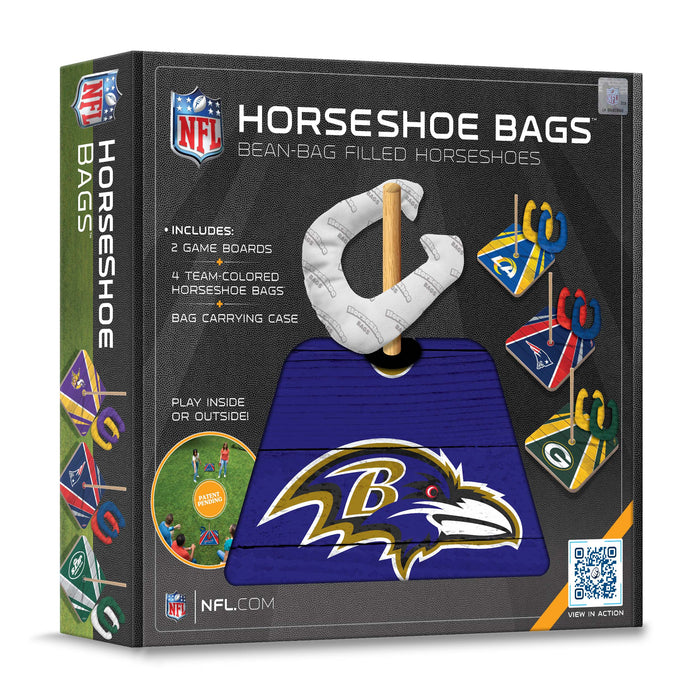 Enhance your outdoor activities with NFL Licensed HorseShoe Bags! This classic toss game has now been upgraded to be even more enjoyable. Constructed from durable fabric and filled with resin beads, Horseshoe Bags can be safely played on any surface, indoors or outdoors. What's more, players of all ages can proudly represent their favorite team with the official logo and colors featured on the bags. These all-weather bags are designed with durable fabric and filled with resin beads, and come with two all-wood game boards with 14" wooden posts, 4 team-colored horseshoe bags, and a carrying case for easy transport and setup anywhere - perfect for tailgating!