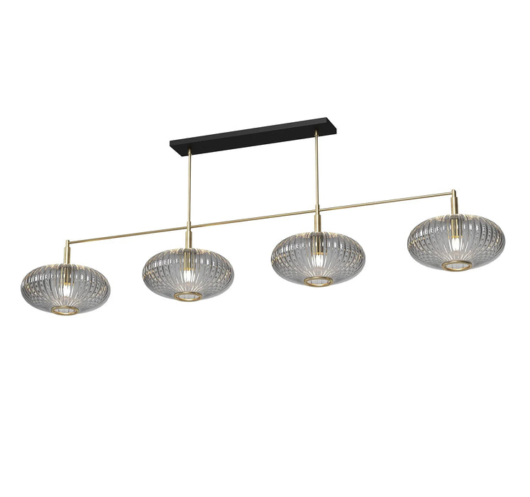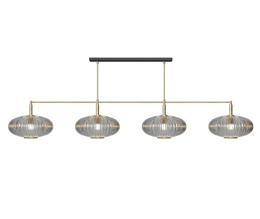 Introducing the Prohibition Lighting Series - a stylish addition to your Prohibition Game Room Furniture. With an Art Deco design, vintage brass light bar, and vibrant smoke gray glass shades, this 66" 4-light fixture adds elegance and charm. Perfect for larger tables or spacious areas, elevate your game room with this unique piece.