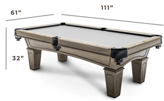 Constructed from the 100% hardwoods, the Elmhurst includes a 3-piece 1" thick slate table bed for consistent playing surface. Available in regulation 7, 8, and 9-foot sizes, the Elmhurst caters to various preferences and space requirements, and is fully customizable, from pocket options to cloth types and colors, including custom embroidery for a unique touch.
