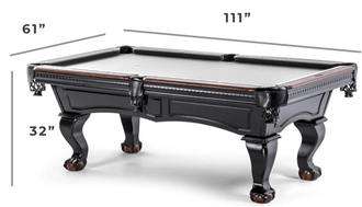 The Spencer Marston Prato is one of our most exquisite and unique tables. We’ve included myriad wood details: apron dentil molding, routing that follows the cabinet’s curves, and to top it off, curved under-cabinet legs that end in a highly detailed ball-and-claw design. Satin walnut finish on the top rails and ball is a beautiful contrast to the satin black finish of the rest of the table, and the combination will match many different game room color schemes. Other distinctive details we’ve added are the double-diamond sights, inlaid with mother of pearl and abalone, and the woven-look embossed leather shield pockets.