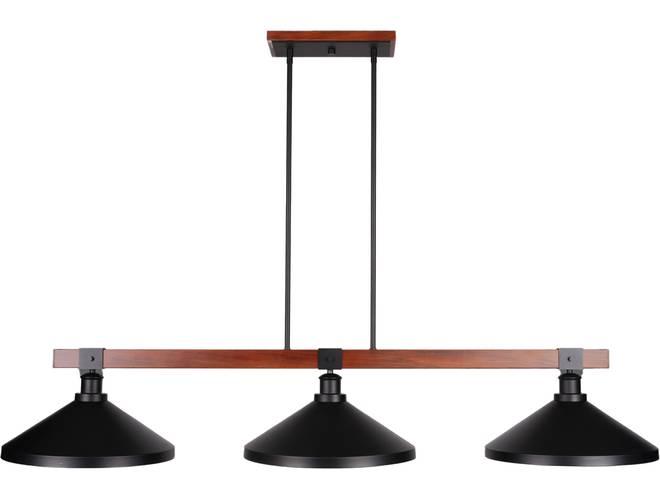 The Tacoma series by Toltec features a distressed wood-look metal light bar paired with 14" matte black metal shades. The wood-like metal frame gives this unique light a warm appeal. This light is the perfect addition to your game room.