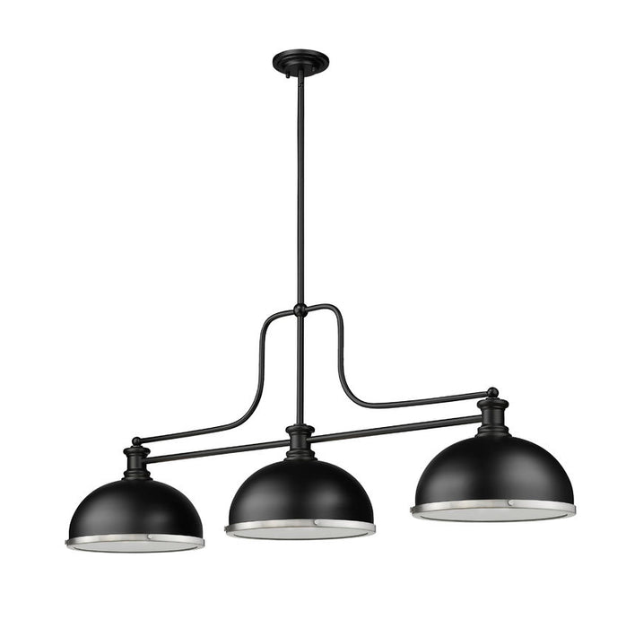 With an elegant industrial aesthetic and a chic fusion of Matte Black and brushed nickel, this billiards pendant from Z-Lite's Mélange collection exudes a refined and exclusive sophistication. The minimal yet graceful design showcases black steel and dome-shaped shades, complemented by brushed nickel accents for a harmonious appearance. Enhance any kitchen island or billiard room with this luxurious lighting option.