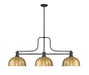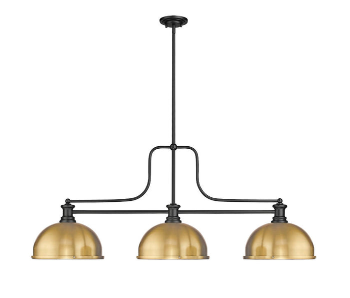 The luxurious Mélange collection from Z-Lite exudes a refined elegance, featuring subtle nods to industrial design and a luxurious blend of Heritage Brass and Matte black finishes. Its exquisite design boasts sweeping curves and a stunning mix of materials, including dome-shaped steel shades in Heritage Brass, beautifully complementing the matte black steel frame. Elevate your kitchen island or game room with this sophisticated and exclusive three-light billiards pendant.