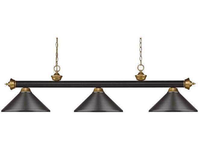The Riviera Collection showcases elegant and traditional lights. This light is finished with a Bronze & Satin Gold and paired with metal Bronze shades. This beautiful light is the perfect way to add a bit of class to your game room. Included is 72 inches of chain per side is included to ensure a perfect hanging height.
