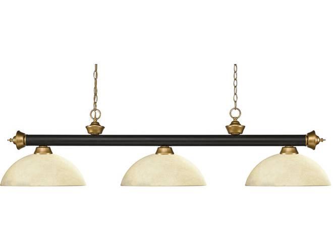 Z-lite's Riviera Collection showcases this gorgeous light. Domed Golden Mottle shades paired with a Bronze light bar with Satin Gold accents. This light creates a contemporary look with a timeless quality to it.Included is 72 inches of chain per side is included to ensure a perfect hanging height.